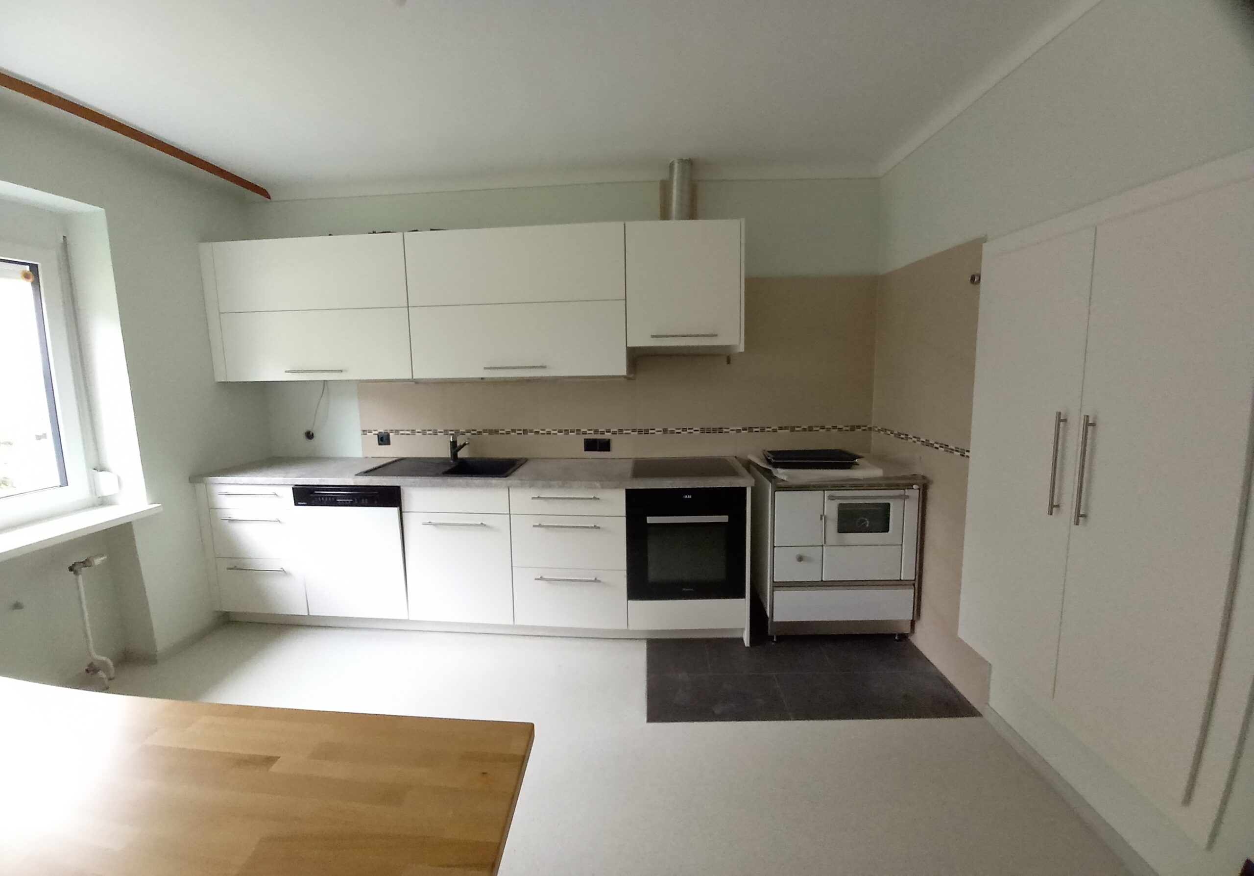 Küchenarbeitsplatte verlängerung und Wandregal mit Fussbodenmaterial